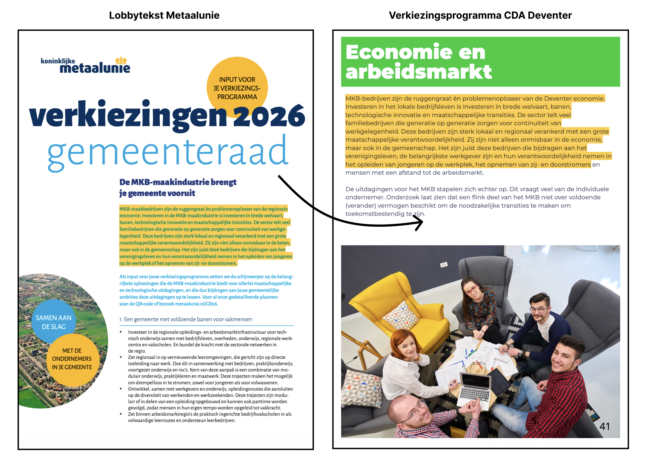 CDA Deventer neemt letterlijk de lobbybrief van De Koninklijke Metaalunie over.