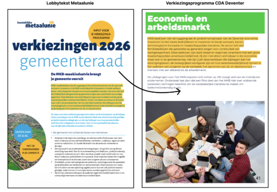 CDA Deventer neemt letterlijk de lobbybrief van De Koninklijke Metaalunie over.